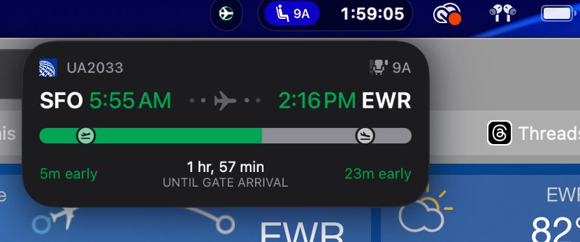 - Airlines like United show my seat, a countdown for boarding, or even baggage claim
